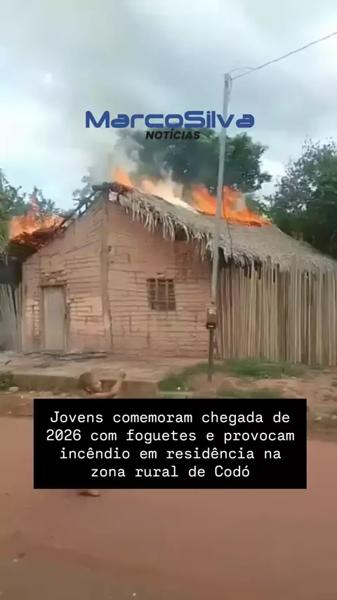 Foguetes provocam incêndio em casa de palha na zona rural de Codó Na tarde desta quinta-feira (1º), um incêndio destruiu a cobertura e vários pertences de uma residência localizada na Rua Roberto Reis, no Km-17, zona rural de Codó. O fogo teria sido provocado após a queda de restos de foguetes soltados por um grupo de jovens que comemorava a chegada de 2026 na localidade.