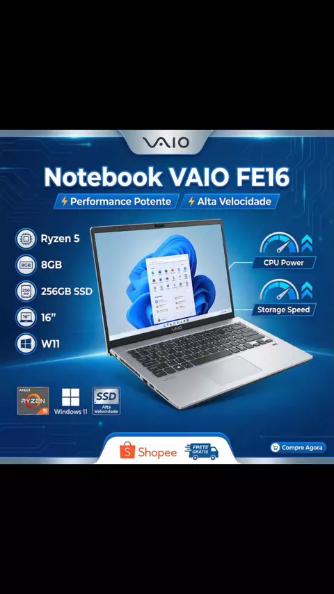 Notebook Vaio Fe16 Ryzen 5 8gb 256gb Ssd 16 W11 por R$2.741,99 🆔🔍CFK-TNG-BUA 🔗https://s.shopee.com.br/30gjhZ4htT