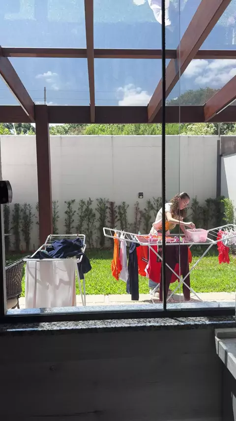 Melissa cuida das roupas dela sozinha! Ela tem um cesto para roupas sujas só para ela. Então ela resolve às roupas dela