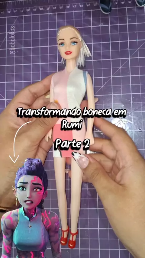Vocês pediram… e aqui está! Resultado da transformação da boneca em Rumi, usando biscuit (porcelana fria), com marcas que brilham na luz negra! Se gostou, curte, comenta o que achou e salva pra acompanhar mais criações 💖 . . . #rumi #huntrix #demonhunters #guerreirasdokpop #biscuit