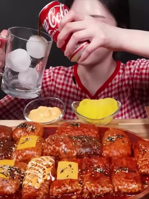 Spicy Buldak Rice Paper Rolls Mukbang#boki#boki_asmr#mukbangboki#eating#eatingshow#eatwithboki#food#FoodLover##