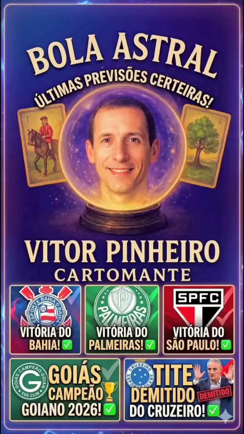 Últimas previsões certeiras do Canal Bola Astral: Goiás Campeão Goiano de 2026, Palmeiras 1X0 Mirassol, Inter 0X1 Bahia, Santos 1X1 Corinthians, Bragantino 1X2 São Paulo e Tite demitido do Cruzeiro!