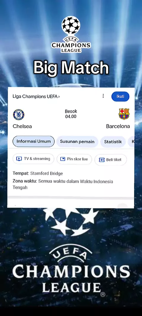 Chelsea 🆚 Barcelona #bigmatch #ligachampions #Chelsea #Barcelona #jadwalbola