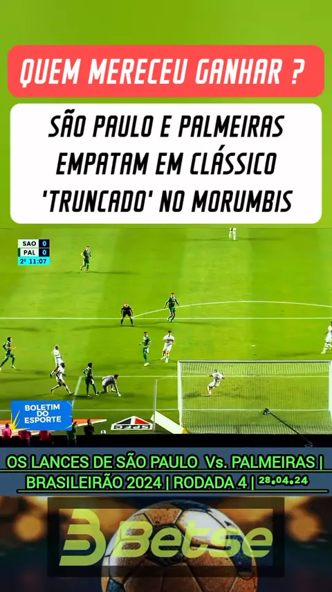 São Paulo e Palmeiras empatam em clássico 'truncado' no Morumbis Brasileirão rodada 4 #saopaulo #palmeiras #Brasileirão2024 #esporteviral #kwaisports @Betse Brasil(O150001541121589)
