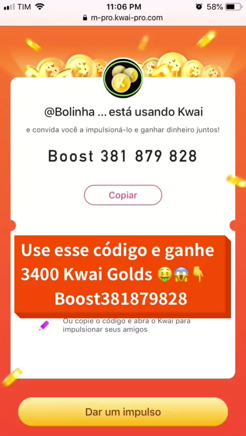 🤑💰 Utilize esse código e ganhe 3400 Kwai Golds 👉 Boost381879828 #kwaiGolds