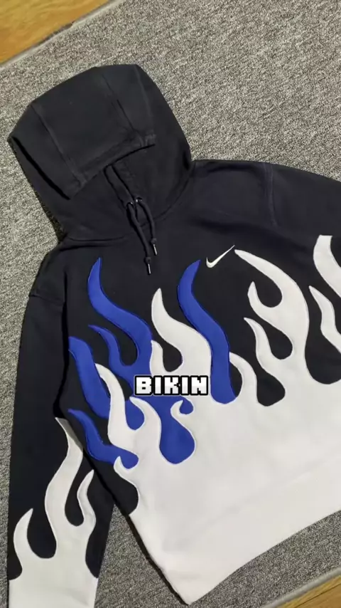 custom reworked flame hoodie🔥 #reworkedclothes #reworkedfashion #reworkednike #sewing #upcycling #diyproject #Fashion