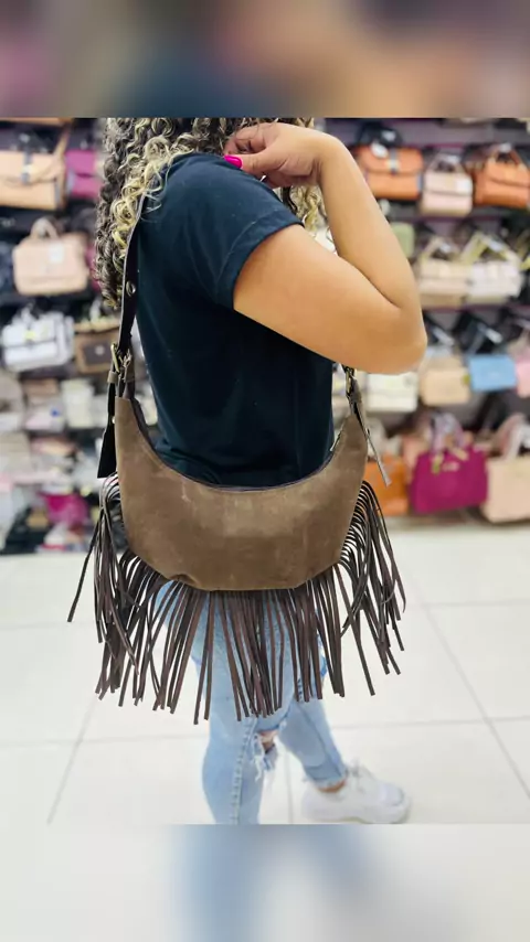 Bolsa Franja 100%Couro camurça! 📍Rua oriente 555 Brás 11977102222 #viral #MODA #bolsas #franja #atacadobras