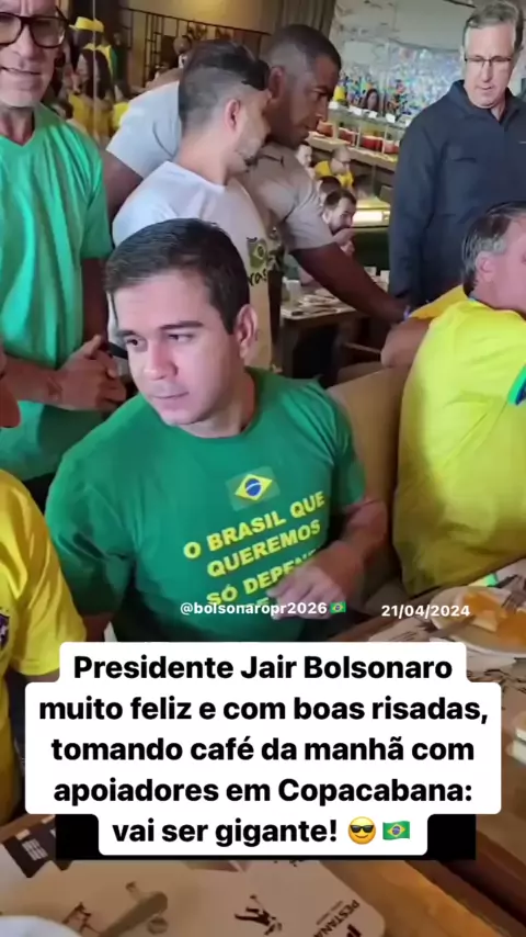 Presidente Jair Bolsonaro muito feliz e com boas risadas, tomando café da manhã com apoiadores em Copacabana: vai ser gigante! 😎🇧🇷