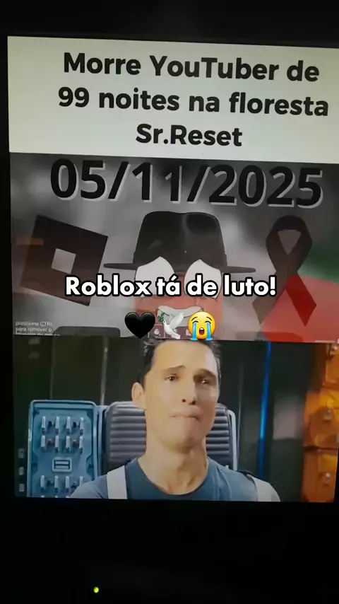 Roblox de luto pelo sr reset, 99 noites na floresta criador. #99noitesnafloresta #luto #triste