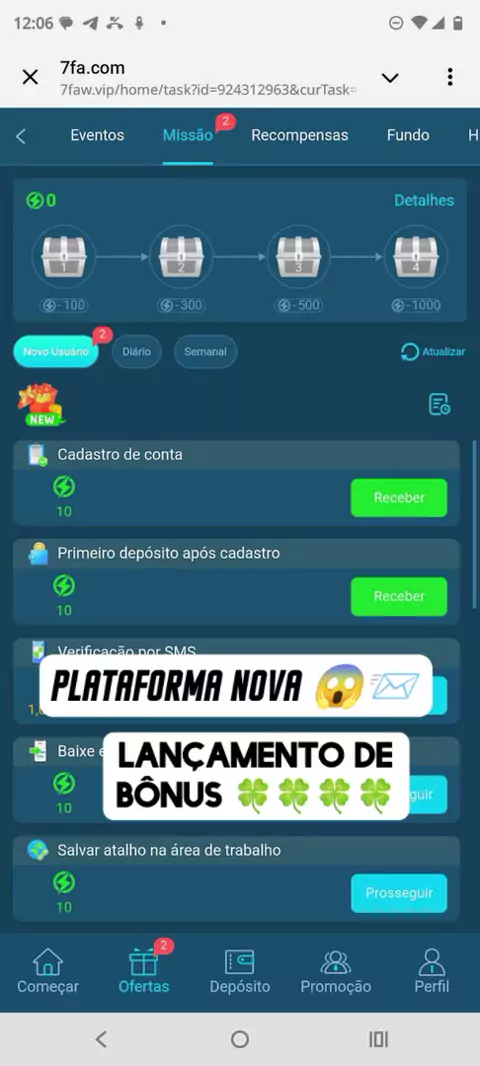 bônus de cadastro
