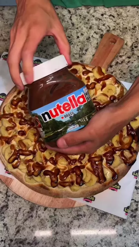 Pizza de banana nevada com muita nutella, e aí será que ficou boa essa combinação? #nutella #pizza #dicassp #Cantakwai