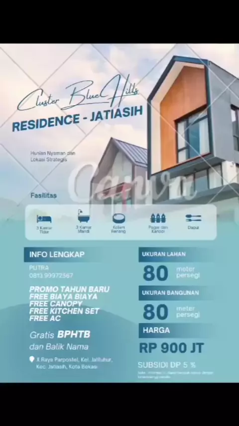 BLUE HILLS RESIDENCE HUNIAN TERDEPAN DI JATIASIH Lokasi : Jalan Raya Parpostel, Kelurahan Jatiluhur, Kecamatan Jatiasih, Bekasi Berlokasi dilingkungan yang ramai dan langsung terhubung ke Jalan Utama Parpostel, recomended cluster untuk temen temen semua. Cluster ini terdiri dari 9 unit dengan rincian sbb : Lt.67/Lb.60 = Rp.997.928.000 Lt.79/Lb.80 = Rp.1.242.075.000 Lt.99/Lb.80 = Rp.1.413.357.940 Lt.76/Lb.60 = Rp.1.075.005.560 Lt.84/Lb.80 = Rp.1.284.896.376 #property #forsale #rumahmew