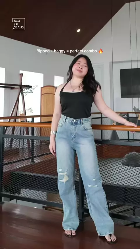 Hijab friendly ripped jeans! Karna rippednya ada lapisan dalam yaa ga tembus langsung ke kulit 👍🏼😚 #boxofjeans #jeansoutfit #baggyjeans #rippedjeans