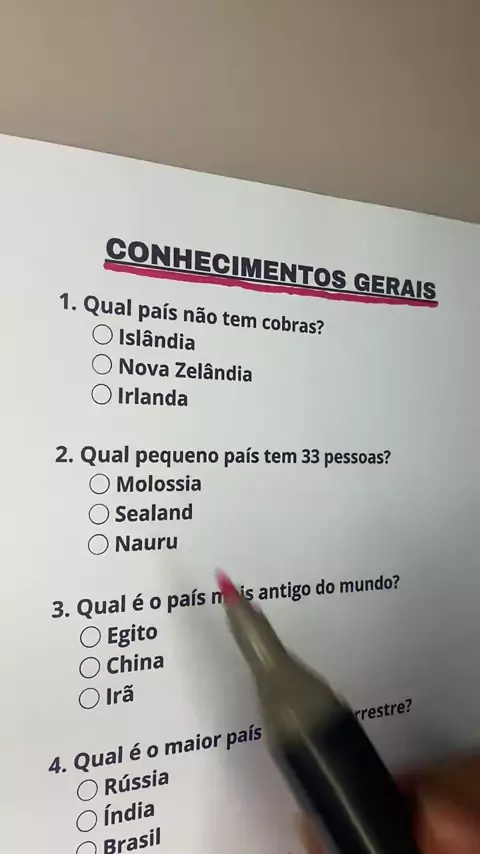 Conhecimentos gerais- Quantas você consegue acertar?#perguntas#perguntaserespostas#prova#conhecimentosgerais#trivia