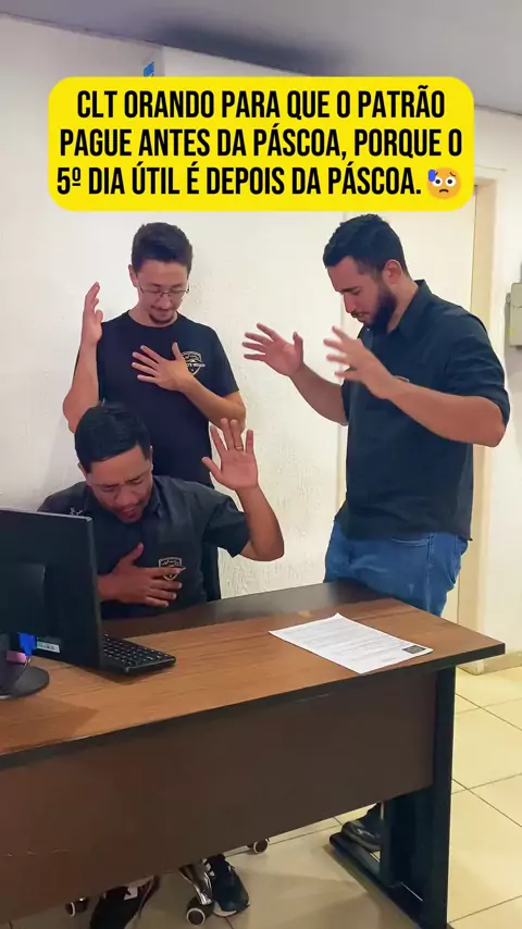 CLT orando para que o patrão pague antes da Páscoa, porque o 5º dia útil é depois da Páscoa 😥🤣