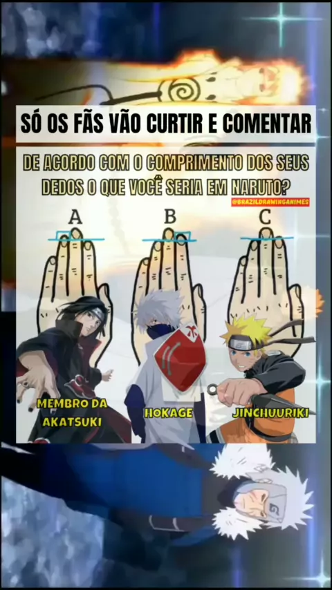 De acordo com o comprimento dos seus dedos o que você seria em Naruto? 🤔 #naruto #anime #otaku #manga