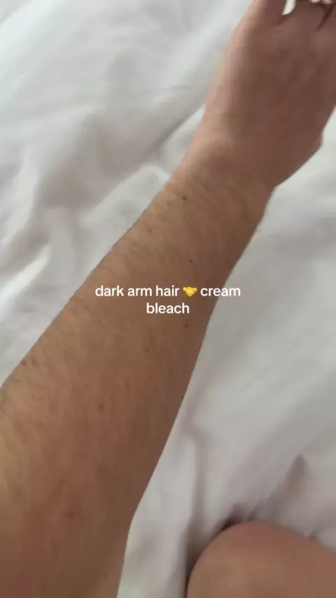 8 minites to virtually invisible arm hair 😌#creambleach#armhair#armhairremoval#armhairbleach#bodyhairbleach#bodyhairremoval#sallyhansencremebleach#cremebleach#hairygirlproblems#hairremovalhacks#hairremoval