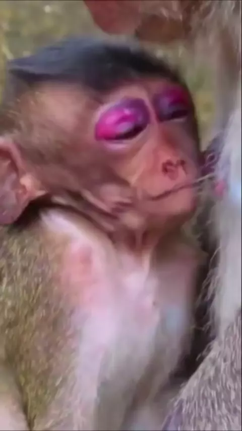 monkey looks swollen face because Bees bit her#babymonkey#monkey#animal