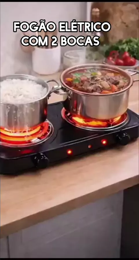 Fogão Elétrico portátil com 2 Bocas botão de controle de temperatura, funciona em Energia elétrica 🔌 110/220V.