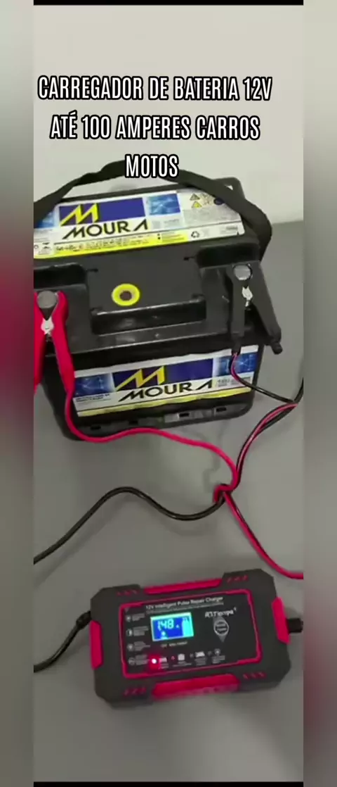 Carregador de Bateria inteligente pra carregar Bateria de carros e motos barcos jet sky 12V até 100 Amperes.