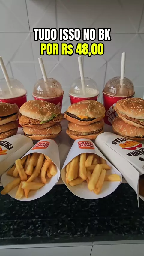 CUPOM: BALADA70 APLICATIVO: 99FOOD Até 70% de desconto Desconto máximo: R$ 40 Pedido mínimo: R$ 30 Válido para novos usuários REGIÕES DISPONÍVEIS São Paulo, Goiânia, Campinas, Rio de janeiro, Salvador, Vassouras, Poços de caldas, Botucatu, Macapá, BH, Recife e Curitiba. Pra comprar todos os itens do video pelo preço mostrado é necessário pedir 4 combos de "2 sanduiches + Batata + Bebida", sendo 1 em cada CPF/cadastro diferente, por R$ 11,99 cada, totalizando R$ 47,96 os 4 combos, que contemp
