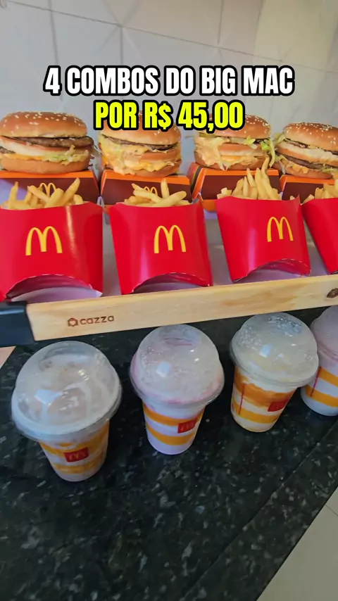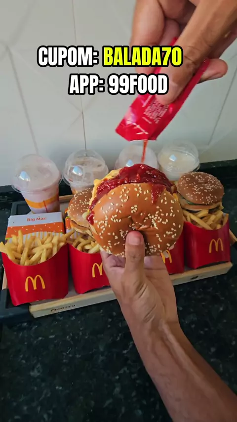 CUPOM: BALADA70 APLICATIVO: 99FOOD Regras: 70% off SOMENTE NA PRIMEIRA COMPRA DE NOVOS USUÁRIOS; R$30 Máx de desconto; Pedido mínimo de R$25. Pra comprar todos os itens do video pelo preço mostrado é necessário pedir 4 combos de big mac com batata e bebida, sendo 1 em cada CPF/cadastro diferente.