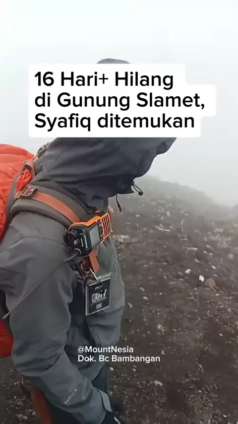 Innalillahi wa inna ilaihi raji’un. Telah ditemukan Syafiq Ridhan Ali Razan di lereng puncak sisi selatan, tepatnya di antara jalur Gunung Malang dan Baturraden, dalam kondisi meninggal dunia (MD). Saat ini proses evakuasi masih terus berlangsung. Turut berduka cita yang sedalam-dalamnya atas kepergian almarhum. Semoga almarhum husnul khatimah, diampuni segala dosanya, dan keluarga yang ditinggalkan diberi ketabahan serta kekuatan. Sumber video: Relawan Independen Dian & Kg Uki Via @slametviaba...