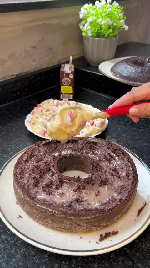 Bolo de chocolate com morangos pro cafe da tarde 🥰 #viraliza #bolo #chocolate #morangos