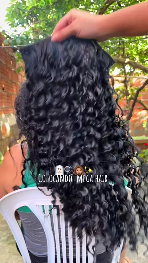 Colocando aplique mega hair no cabelo yy yy #cabelocacheado #rotinacapilar