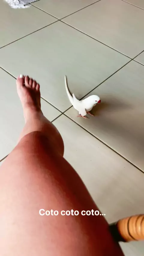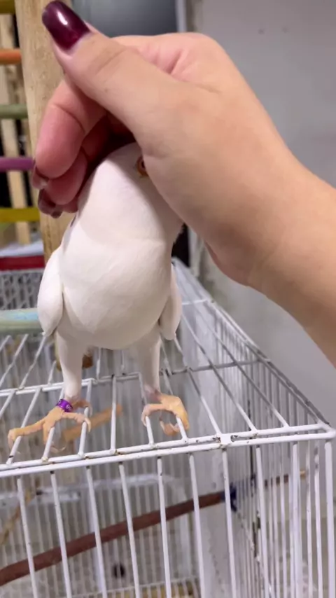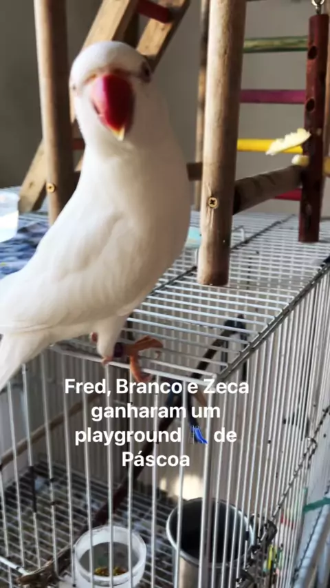 Sou um Ring Neck albino! Me divirto com minha mãe, irmãos e brinquedos!