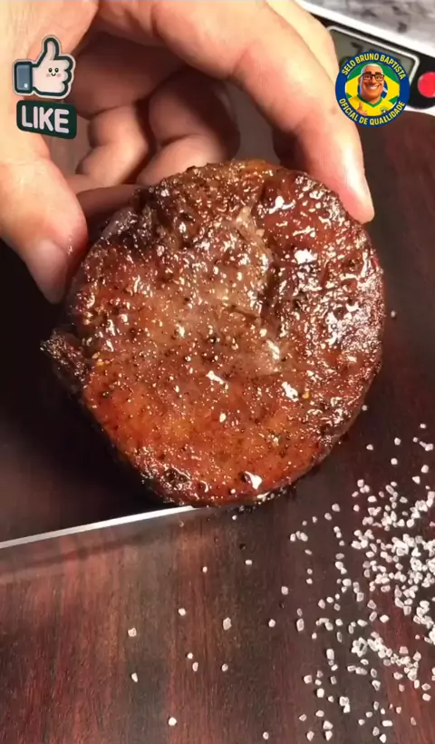 O Ponto da Perfeição! 🤤 Olha essa suculência... 🔥 Crostinha selada por fora e aquele rosa perfeito por dentro. É assim que se respeita um Filet Mignon! Quem aí amassava agora? 🙋‍♂️🥩 #kwaifood #gastronomia #carne #receitas #viral