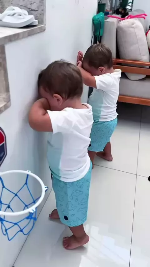 A mamãe colocou todo mundo no cantinho do pensamento kkk #gemeos #twins #baby #viral #meme
