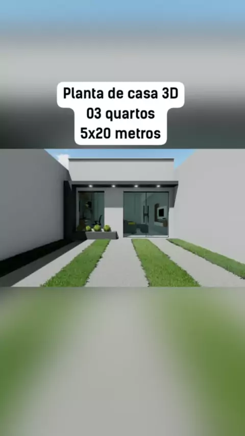 Planta de casa com 03 quartos pra terrenos 5x20 metros! #plantadecasa #planta3d #projetodecasa #casapequena #casaarrumada