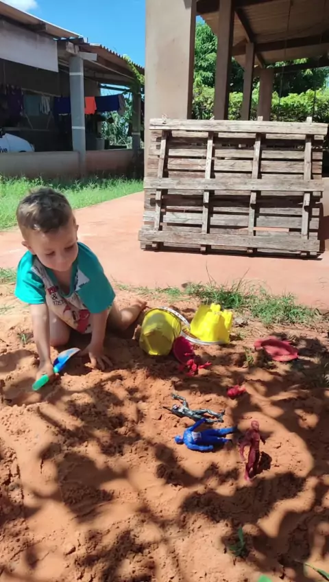 brincando sozinho na areia
