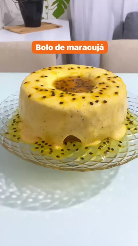 INGREDIENTES DA MASSA: 3 ovos 150 gramas 1 e 1/2 xícara (chá) de açúcar 275 gramas 1/2 xícara (chá) de óleo 110 ml 1/2 xícara (chá) de suco puro de maracujá 110 ml 1/4 de xícara (chá) de água 50 ml 1 e 1/2 xícara (chá) de farinha de trigo 205 gramas 1 e 1/2 colher (sopa) rasa de fermento em pó 22 gramas INGREDIENTES DA CALDA: 1/2 xícara (chá) de suco puro de maracujá 110 ml 1 xícara (chá) de água 210 ml 1/2 xícara (chá) de açúcar 90 gramas 2 colheres (sopa) rasas de semente de maracujá #bolo
