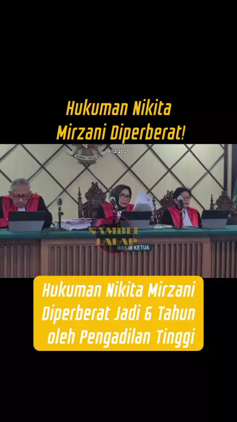 Hukuman Nikita Mirzani Diperberat Jadi 6 Tahun oleh Pengadilan Tinggi, Jakarta 9/12/2025 #NikitaMirzani #rezagladys #gosip