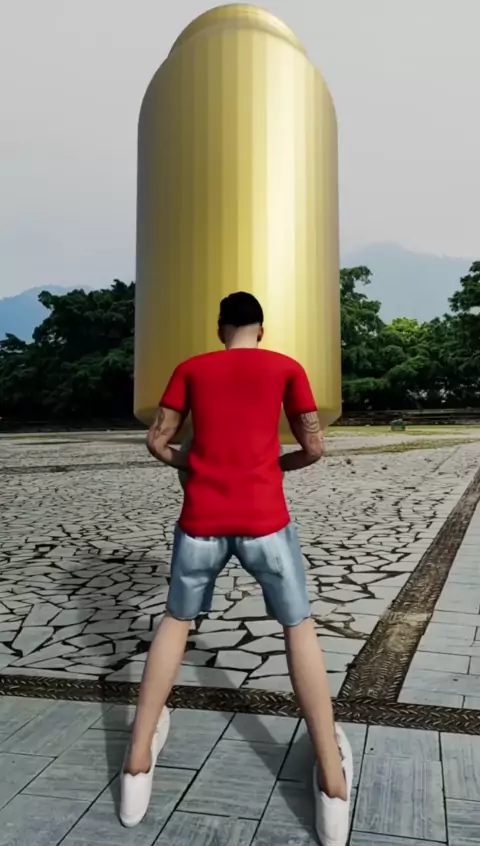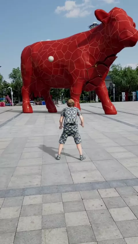 O menino de vermelho jogou a bola e abriu a estátua dourada do ganso grande # Você é o culpado de um ato um.