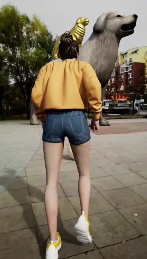 O menino jogou a bola para desbloquear o quadrado grande cão estátua dourada # Olá o ser culpado de um ato