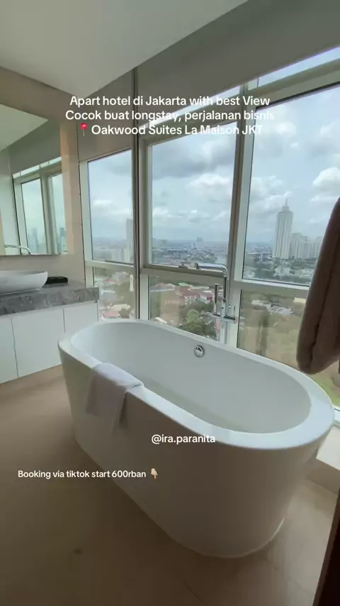 Bayangin lagi berendam di bathub with city view jkt #oakwoodlamaison