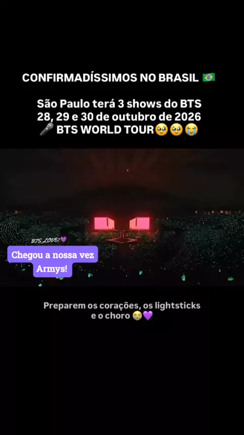 Chegou a nossa hora, vamos nos preparar e curtir o show da nossa vida. 💜 #show #bts #bts_love7 💜 #army #brasil