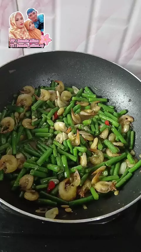 Masak tumis kacang panjang campur udang ☺️