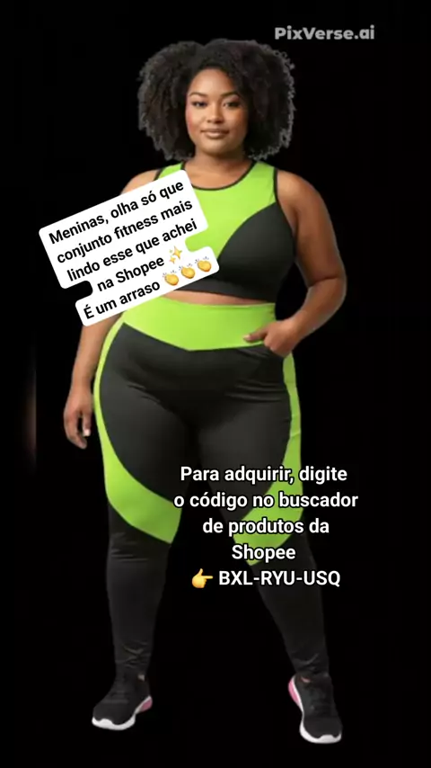 Meninas, olha só que conjunto fitness mais lindo esse que achei na Shopee ✨️ É um arraso 👏👏👏 Para adquirir, digite o código no buscador de produtos da Shopee 👉 BXL-RYU-USQ #fitnesses #plussize #roupafitness #Academia #2025internationalshortvideocompetition