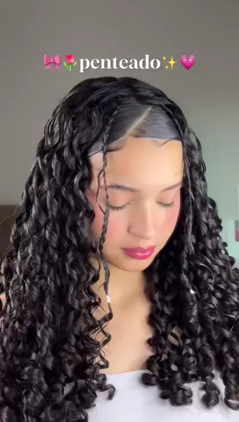 Esse penteado fica lindooo😮‍💨💗 #penteado #penteados #cabelocacheado #cabelo