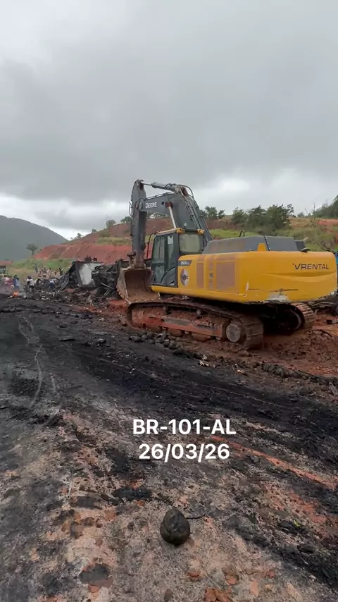 Escavadeira John Deere fazendo rampa na duplicação da BR 101 AL. #obra #Trabalho #kwai #brasil #homem