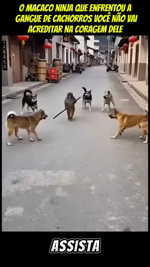 O MACACO NINJA QUE ENFRENTOU A GANGUE DE CACHORROS VOCÊ NÃO VAI ACREDITAR NA CORAGEM DELE #educação #Desafioskawai11 #foryou #animal #desafios11