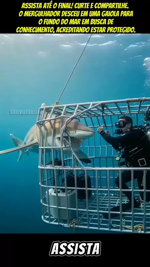 ssista até o final! Curte e compartilhe. O mergulhador desceu em uma gaiola para o fundo do mar em busca de conhecimento, acreditando estar protegido. Mas, de repente, um tubarão colossal surgiu das profundezas e atacou a estrutura com fúria, sacudindo a gaiola como se fosse frágil papel. O desespero tomou conta do homem, que via sua vida por um fio, preso em meio ao oceano selvagem. Foi então que um milagre aconteceu: #educação #foryou #ia #viraliza #vidaanimal