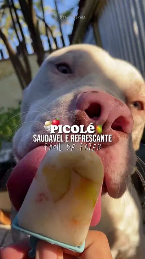 picolé refrescante e saudável pra seu 🐶! você pode usar o que tem aí na sua casa, como sachê, fruta batida com água, ou até mesmo só o gute gute! aqui eu usei o que tinha: piquei maçã, mamão, manga e juntei com a água, coloquei 2 colheres de iogurte natural (tem receita no feed, hein?), deixei no congelador e voilà! 🤌🏻 coloquei na forminha de sorvete, mas você pode usar qualquer recipiente, o importante é congelar e seu doguinho se refrescar! 🥰 #receita #pitmonster #pitbull #cachorro
