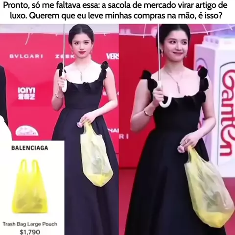 Bolsa que mais parece uma sacola de mercado avaliada em cerca de US$ 1.790 (aproximadamente R$ 10 mil) chamou a atenção nas redes sociais após ser vista com a atriz chinesa Zhang Jingyi durante um evento de luxo.