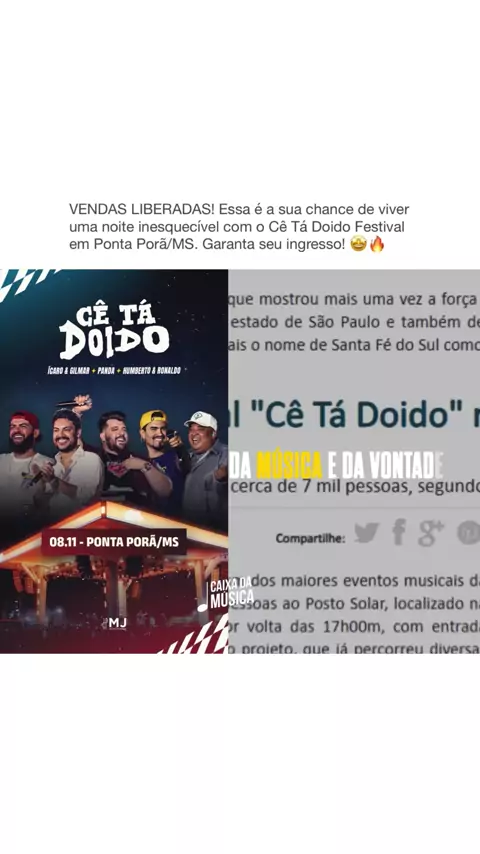 Os ingressos pro @cetadoido_festival em Ponta Porã/MS já estão disponíveis. Não vai ficar de fora, né? 🔥 #cetadoidofestival #sertanejo