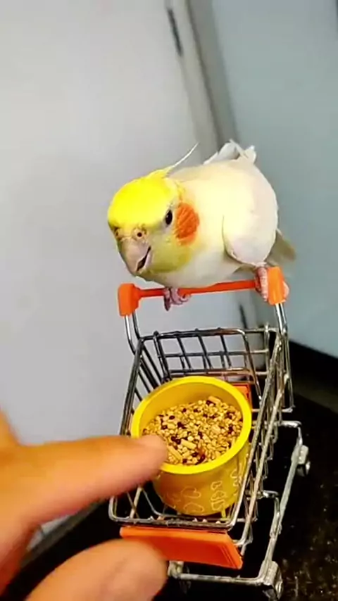 Em 30 segundos limpei e coloquei comida para minha #calopsita • #calopsitas_mansa